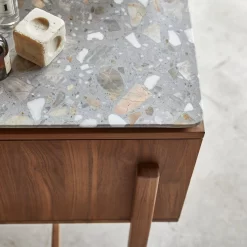 Edgar – Meuble Salle De Bain En Noyer Massif Et Terrazzo Premium Moon 80 Cm