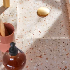 Edgar – Meuble Salle De Bain En Teck Massif Et Terrazzo Premium Pink 80 Cm