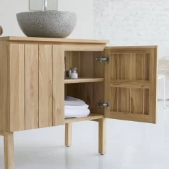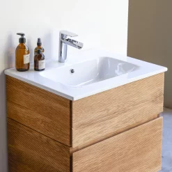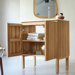 Karl – Meuble Salle De Bain En Chêne Massif Et Céramique 60 Cm