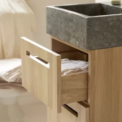 Karl – Meuble Salle De Bain En Chêne Massif Et Pierre De Lave 60 Cm