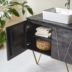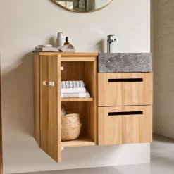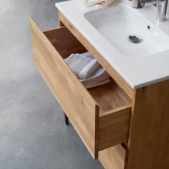 Nova – Meuble Salle De Bain En Chêne Massif Et Céramique 80 Cm