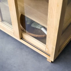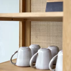Élégante sobriété et détails raffinés : le vaisselier en chêne massif Adel est idéal pour sublimer votre vaisselle ou vos jolis objets déco. On aime la pureté de sa ligne, la blondeur de son bois qui autorise de nombreuses associations de style et ses finitions qui font entrer la nature dans la maison : le fond est recouvert d’un cannage en rotin pour conférer à l’ensemble douceur et naturel, une influence pile dans l’air du temps. A noter aussi les tiroirs bien pratiques pour accueillir les couverts, les serviettes ou tous ces petits objets qu’on ne veut pas voir traîner dans le séjour… et les portes coulissantes qui permettent de l’installer sans vous préoccuper de la place que prendront les portes ouvertes.