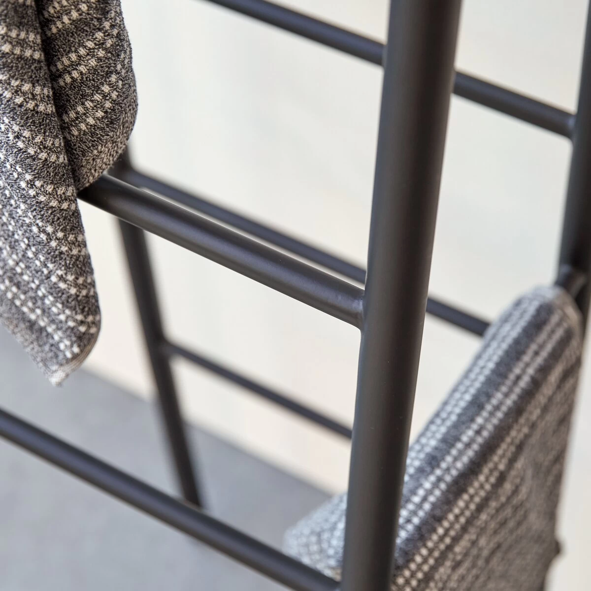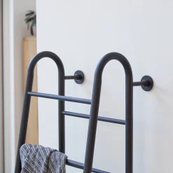 D’inspiration factory, le porte-serviettes en métal Adja conjugue élégance contemporaine et originalité. Bien pratique, il reçoit serviettes de toilette, serviettes de bain, tapis… A chacun son barreau ! Peu encombrant mais très généreux en termes de place, il s’installe dans toutes les salles de bain ou cabinets de toilette et peut aussi être détourné en patère dans une entrée, valet dans une chambre et pourquoi pas range-magazines, cravates, foulards… Laissez parler votre créativité.