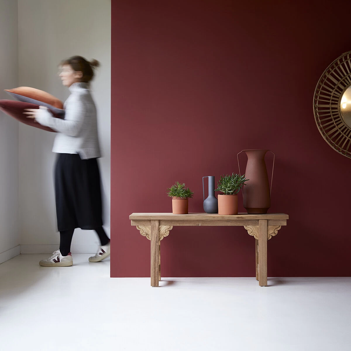 Le banc en teck recyclé Adonis trouve sa place dans toutes les pièces de la maison : au séjour ou au salon pour accueillir les plantes vertes ou de beaux objets déco… dans l’entrée pour déposer les sacs… même dans la chambre, en bout de lit !