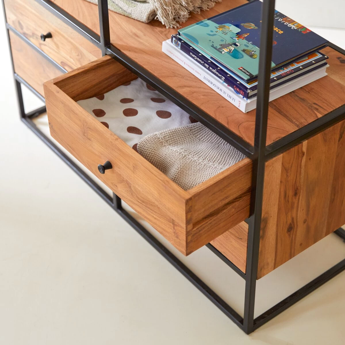 Si le côté ludique et industriel de la bibliothèque en acacia massif et métal Agra vous séduit autant qu’elle séduit votre enfant, nous vous proposons de découvrir les autres éléments de notre gamme en Métal et Bois. N’hésitez pas à leur combiner des meubles de notre série Atelier.