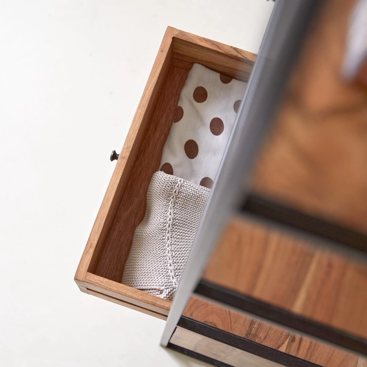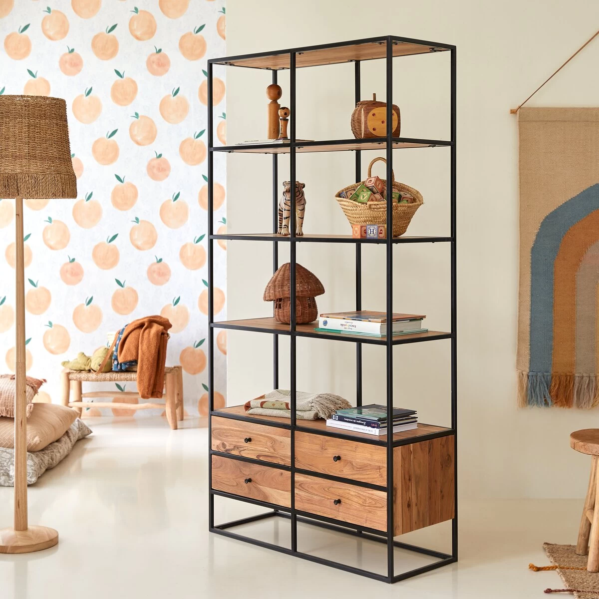 Avec la bibliothèque en acacia massif certifié FSC® et métal Agra, l’imagination est au pouvoir : chasse au trésor dans un pays exotique ou incursion dans l’usine des grands-parents, le choix des rêves est vaste et les aventures nombreuses ! Ranger ses affaires devient un vrai plaisir : on cache les petits trésors dans les tiroirs et on expose les créations issues des mercredis récréatifs ou les jeux de société sur les différentes étagères casiers. Et quand l’enfant organise son univers, il gagne en autonomie… il grandit !
