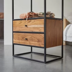 La colonne en acacia massif certifié FSC® et métal Agra. Jouer dans une chambre à l’esprit industriel, c’est ouvrir son imaginaire à des milliers d’aventures… En rêve ou en jeux, on explore le monde dans une usine de “l’ancien temps” ou dans la profonde jungle : on peut tout décider puisqu’on joue à “on disait que”. On rangera les jeux de société au milieu pour les attraper facilement et les œuvres d’art du mercredi tout en haut. Les petits trésors trouveront leur place dans les tiroirs… il ne s’agirait pas que le petit frère ou la petite sœur ne les perde.