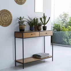 La console en métal et bois d’acacia massif certifié FSC® 100 Agra interprète avec beaucoup de réussite le style industriel.