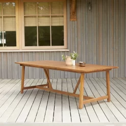 La table de jardin Alba en acacia massif est librement inspirée des tables de ferme, ces meubles généreux et accueillants ; elle offre un esprit campagne très apprécié dans la déco d’aujourd’hui.
