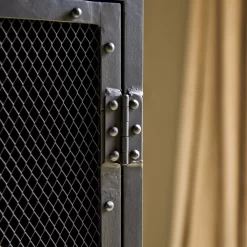 Faites entrer l’esprit Indus dans la salle de bain ! La colonne de salle de bain en métal Alma permet de ranger avec style accessoires et linge de toilette… et de les visualiser d’un seul regard grâce à la porte grillagée très design.