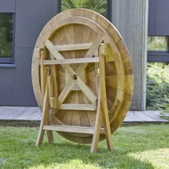 Le salon de jardin en teck 120 Andria 2, vous accueille du printemps à l’automne… L’hiver, on le range très facilement dans le garage ou le chalet de jardin : pliée, la table est très peu encombrante et les fauteuils sont empilables. Vous aimerez la blondeur de son teck massif et l’élégance de ses lignes contemporaines. Pour vous composer un univers chaleureux, associez-lui des éléments de décoration d’extérieur, comme la lanterne Leonti Blue ou Leonti Green : ambiance romantique assurée ! Le salon en teck Andria 120 est composé d’une table ronde et de 2 fauteuils confortables et stylés. Au gré des envies, les fauteuils jouent aussi les sièges de repos : un bon bouquin, l’ombre d’un arbre, un petit vent doux… le bonheur !