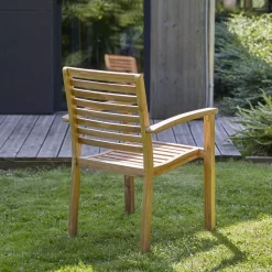 Vous serez séduits par son design à la fois simple et épuré en teck latté qui apportera à votre extérieur une touche moderne en toute simplicité. Sa teinte naturelle lui confère charme et authenticité. Ses accoudoirs vous permettront de vous installer confortablement.