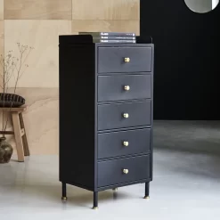 Détournée de sa vocation première, la commode en métal 5 tiroirs Anika a quitté les ateliers du début du siècle dernier pour se nicher dans nos intérieurs contemporains ! Bien pratique, elle permet de ranger de manière très organisée différents éléments selon l’endroit de la maison où elle trouve sa place : au séjour, elle reçoit le linge de table, dans la cuisine de l’épicerie ou la batterie par exemple, dans la chambre les petits vêtements ou le linge de lit… jusque dans la salle de bain pour recevoir les produits de beauté et autres accessoires de toilette !
