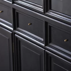 Composé de 4 portes vitrées et de portes et tiroirs façades bois, cette bibliothèque imposera son élégance dans votre séjour ou bureau.