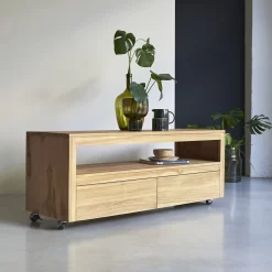 Ce meuble TV en teck 140 Anoa est composé de 2 grands tiroirs et d’une niche ouverte.