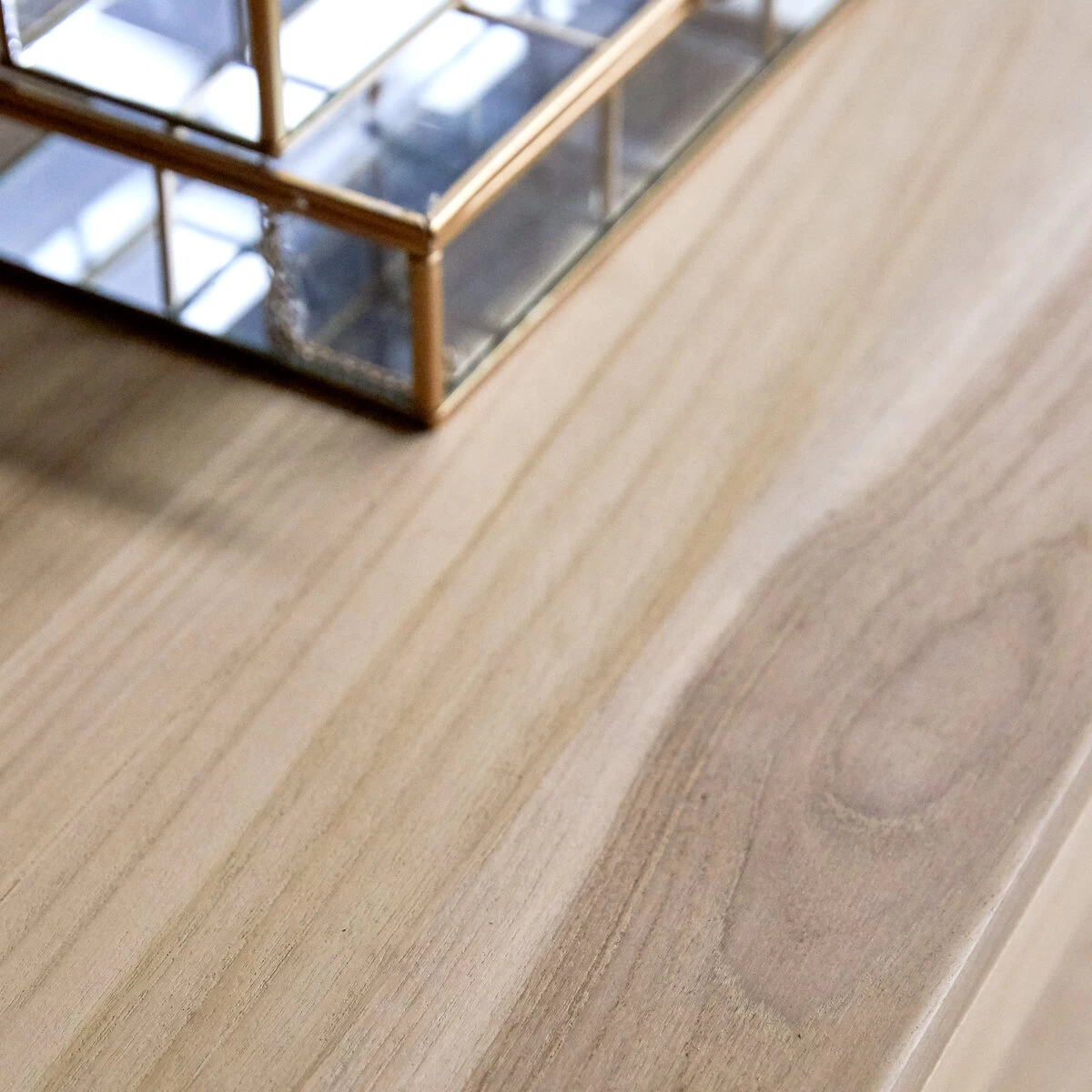 Particulièrement convoité en architecture et en mobilier, le teck est dense, résistant à l’humidité et durable. Très esthétique, il affiche une élégance teintée d’exotisme et offre une large palette de nuances : miel clair, bronze ou brun avec des veinages sombres.