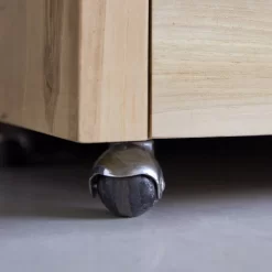 Bien pratique : le meuble TV en teck Anoa est monté sur roulettes pour le déplacer facilement.