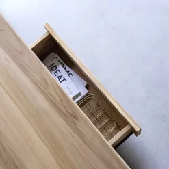 Généreux, il accueille le matériel audio visuel et permet de ranger dans ses 3 larges tiroirs, les accessoires dont on a besoin au salon : télécommandes, cd, dvd, magazines… et tous ces petits objets qu’on ne veut pas voir traîner sur la table basse !