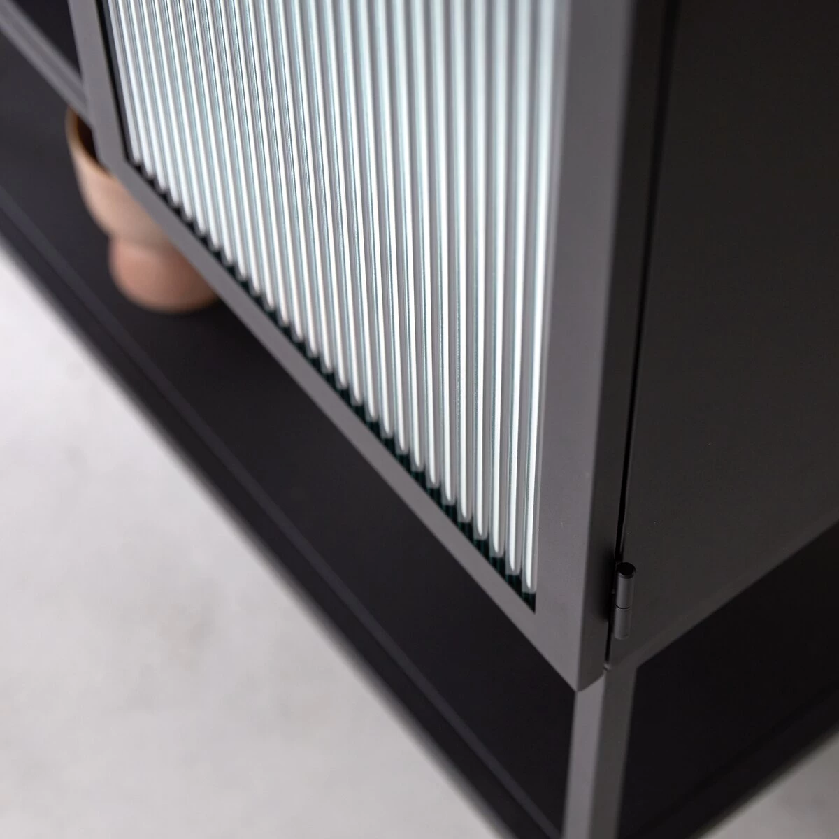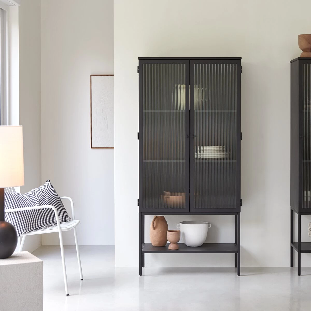 D’inspiration industrielle, la vitrine en métal Antonin semble tout droit sortie d’un atelier du début du vingtième siècle : elle en adopte le minimalisme, les matériaux et la praticité ! Intemporelle et de très belle facture, cette vitrine combine le métal lisse protégé par une poudre qui n’en change pas l’apparence nette et le verre trempé opaque qui laisse deviner sans dévoiler le contenu : résultat, un meuble stylé et plein de personnalité. Idéal au séjour pour organiser la vaisselle et le linge de table, elle trouve aussi sa place dans le salon pour ranger gourmandises sucrées ou salées, les verres, les bouteilles… bref tout ce qui préside à des moments de convivialité réussis. Dans la chambre, elle reçoit le linge de lit ou les vêtements pliés et dans la salle de bain serviettes de toilette et produits de beauté. A noter, la tablette à la base qui permet d’exposer des objets de déco, les portes qui restent bien fermées grâce aux aimants judicieusement répartis et les discrètes poignées.