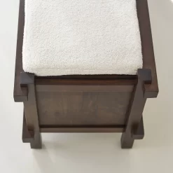 Charme exotique et reflets nuancés du plus bel effet pour le bout de lit Arko en manguier massif. Ce meuble aux accents exotiques, complète avec réussite le lit Arko et le chevet Arko pour dessiner une chambre à coucher qui invite au voyage… sans quitter la maison ! Idéal aussi au salon pour réveiller d’une touche ethnique la déco existante ou composer un univers complet inspiré d’horizons lointains, il devient meuble de rangement pour les chaussures dans une entrée spacieuse ou le vestiaire : bien pratique, son grand coussin pour se chausser assis ! Le manguier massif est verni pour être facile à vivre au quotidien.