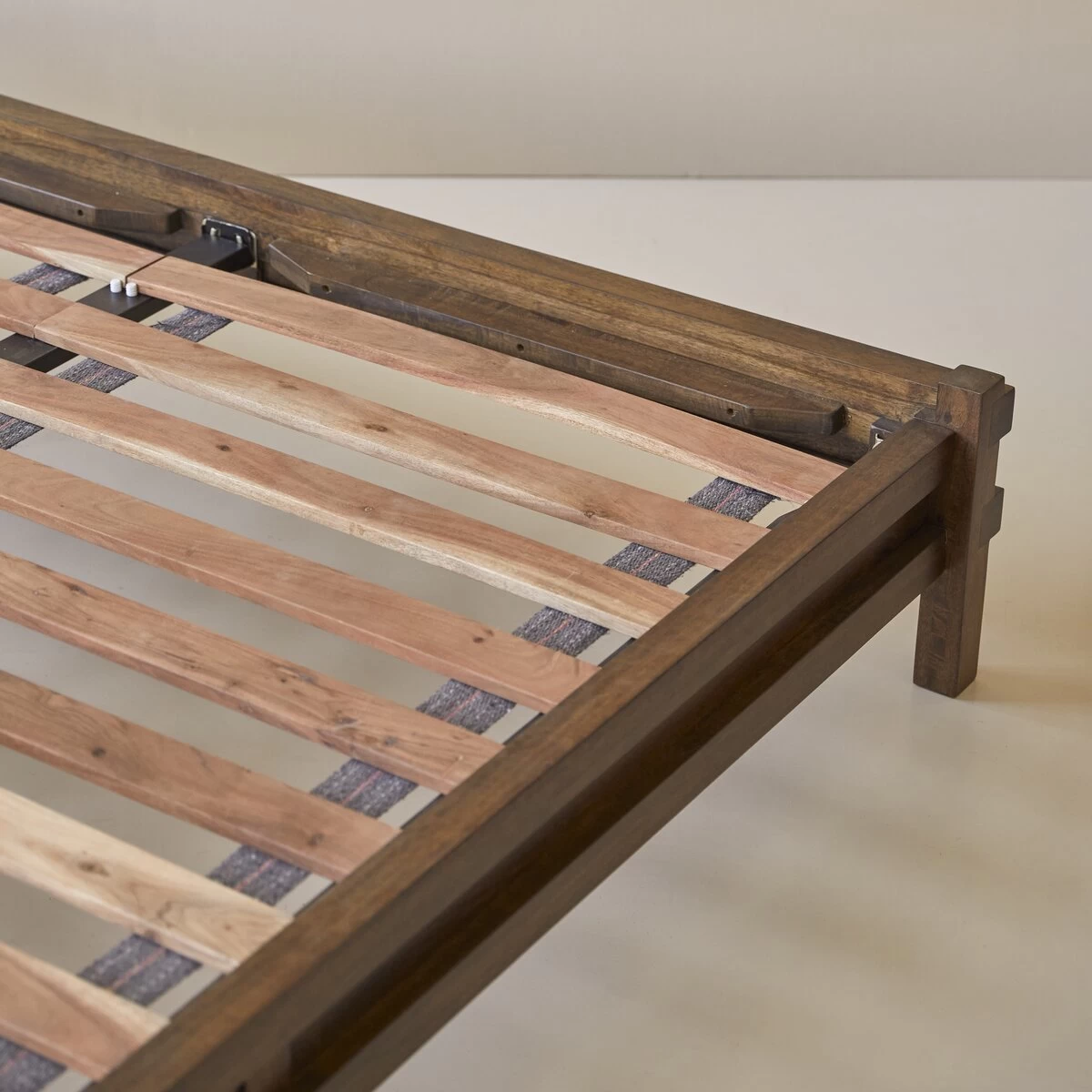 Idéal pour vous dessiner un univers dépaysant, le lit Arko en manguier massif peut être complété du chevet Arko assorti, du bout de lit Arko équipé d’un coussin et, dans une chambre spacieuse, de la bibliothèque haute Arko ! La promesse d’une chambre au charme exotique bon pour le moral…