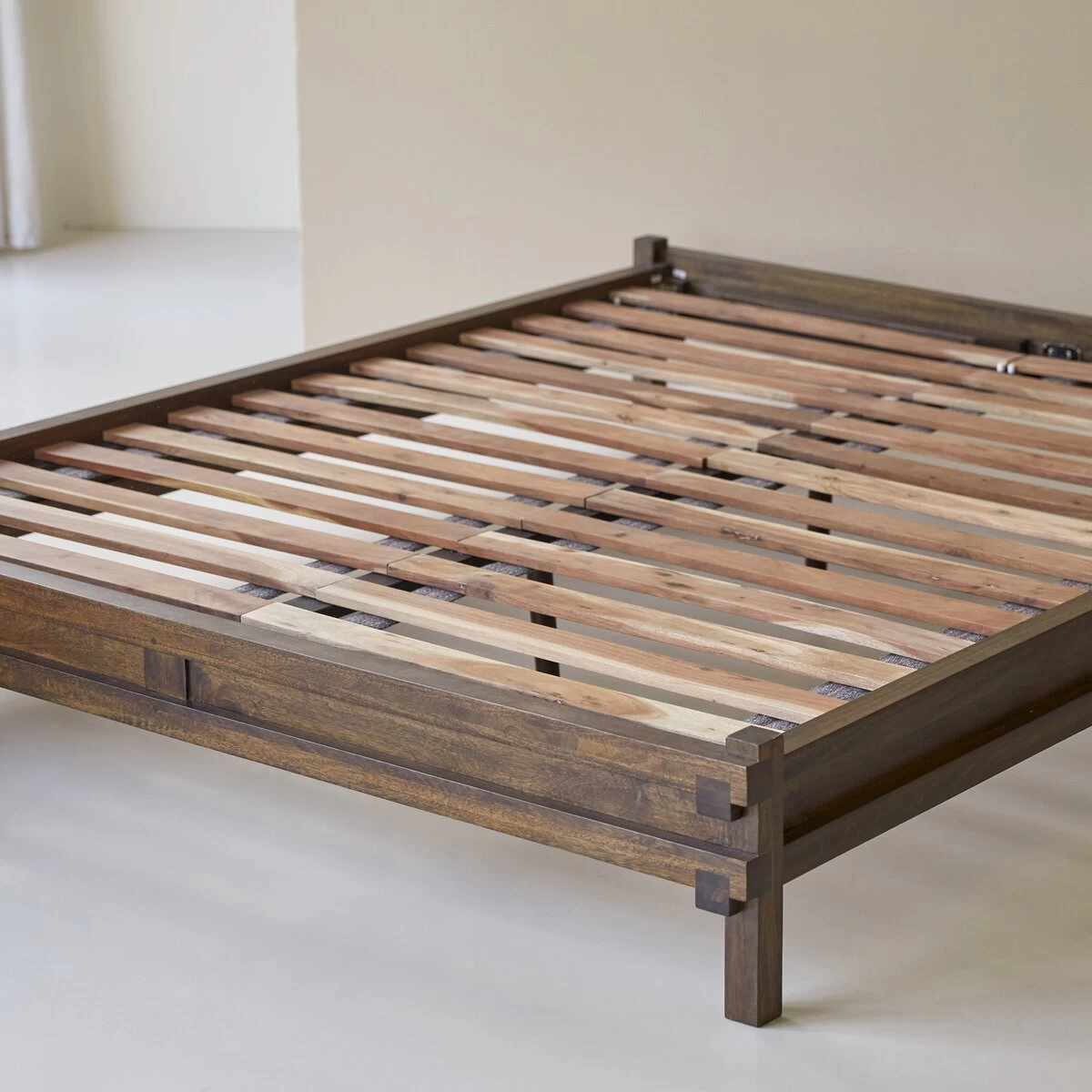 Comme une invitation au voyage, le lit Arko en manguier massif s’inspire d’horizons lointains pour composer une atmosphère néo-ethnique dans la chambre. On aime la teinte nuancée aux reflets chatoyants et la beauté naturelle du bois, verni pour être facile à vivre au quotidien.