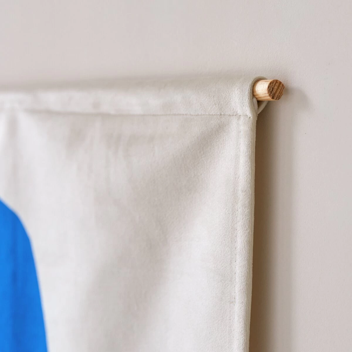La tenture Babylone Blue Casbah signée Babel Brune. On y voit un petit village antique, un chemin qui s’ouvre vers ailleurs ou simplement une création d’art en camaïeu de bleu. Quelle que soit l’image que vous inspire cette jolie tenture, elle apportera beaucoup d’élégance et de personnalité à votre intérieur. Idéale pour habiller le mur du salon ou de la chambre, elle est réalisée dans une suédine de velours déperlante aux reflets subtils, imprimée en France avec des encres non polluantes et via un procédé peu consommateur en eau et en énergie. Elle peut être jouée en solo ou associée à nos autres tentures signées Babel Brune, comme la Babylone Pink Casbah ou Babylone Blue Tour. La barre d’accroche est en hêtre.