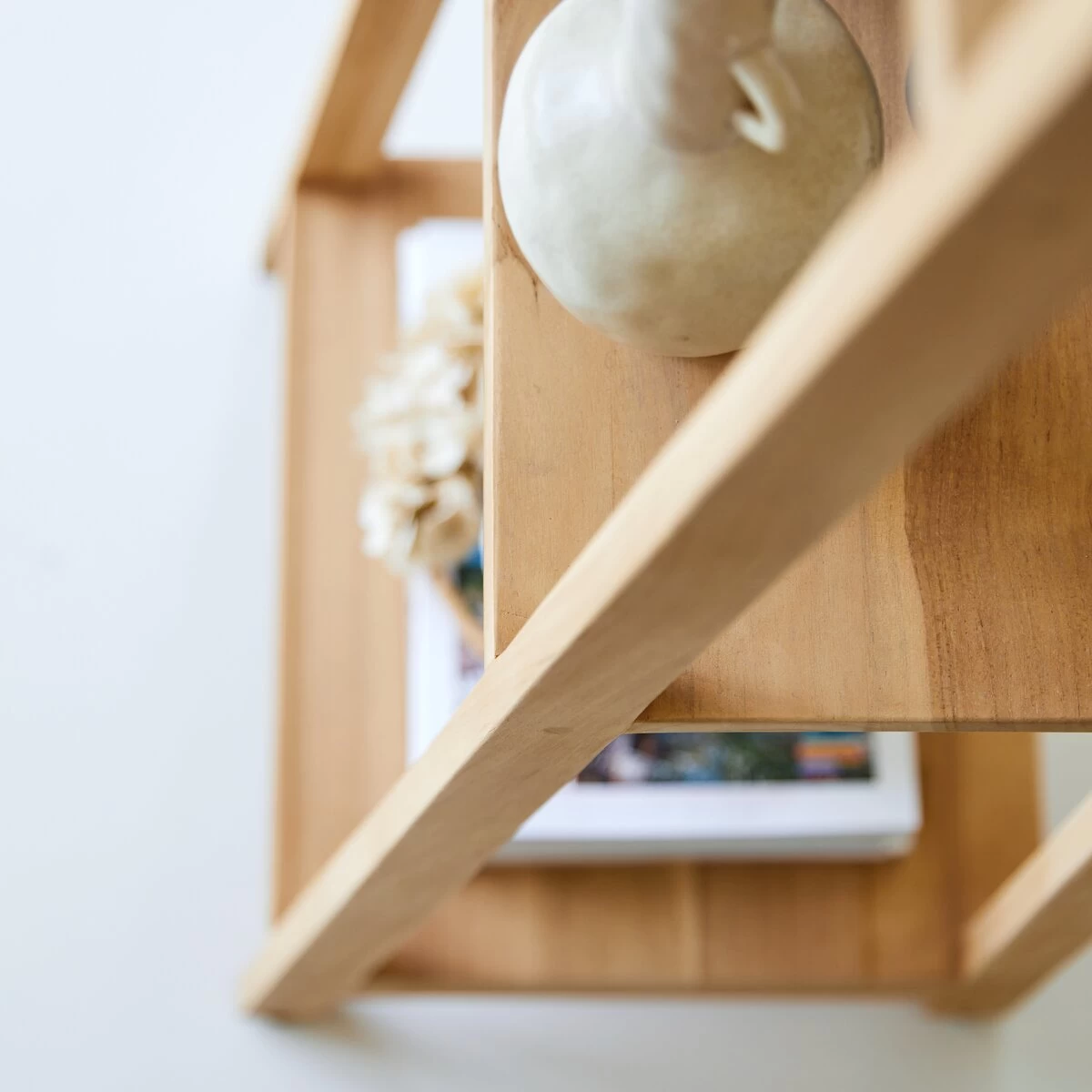 Cette petite étagère en teck brut apportera à votre pièce une note naturelle et tendance à la fois élégante et actuelle, elle est composée de 4 niveaux pour le rangement de vos livres et accessoires de décoration. Les lignes sobres et élégantes de ce meuble de rangement alliées à sa teinte claire s’adapteront à tous les intérieurs. Vous aimerez la diversité des dimensions utiles, pour une organisation variée et à votre image.