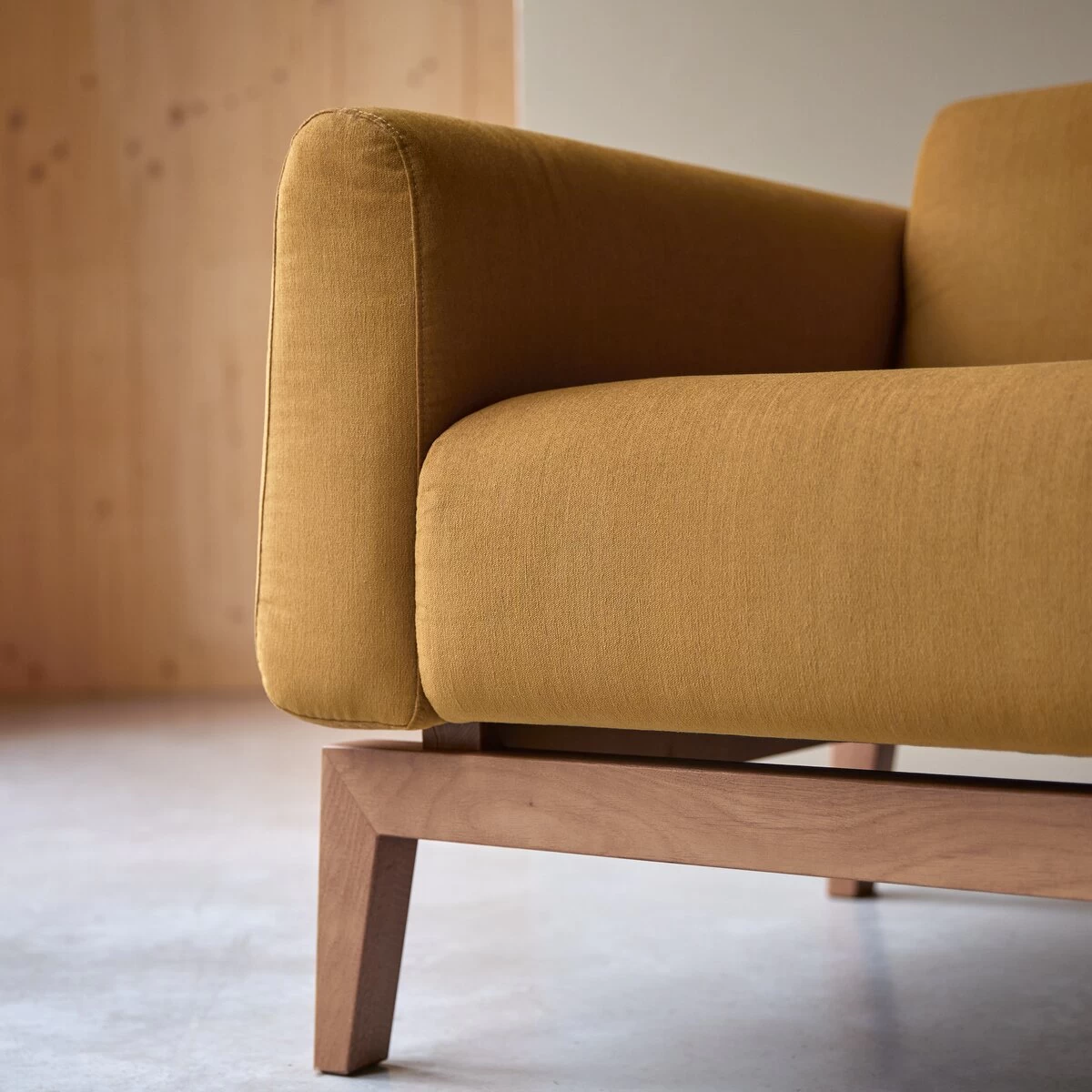 D’inspiration scandinave, le fauteuil Bjorn moutarde se marie facilement avec vos meubles actuels : la simplicité de sa forme autorise toutes les associations de style. Il peut être joué seul, à deux… ou venir compléter l’un de nos canapés Bjorn moutarde 2 ou 3 places.