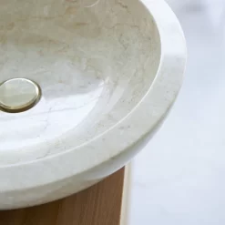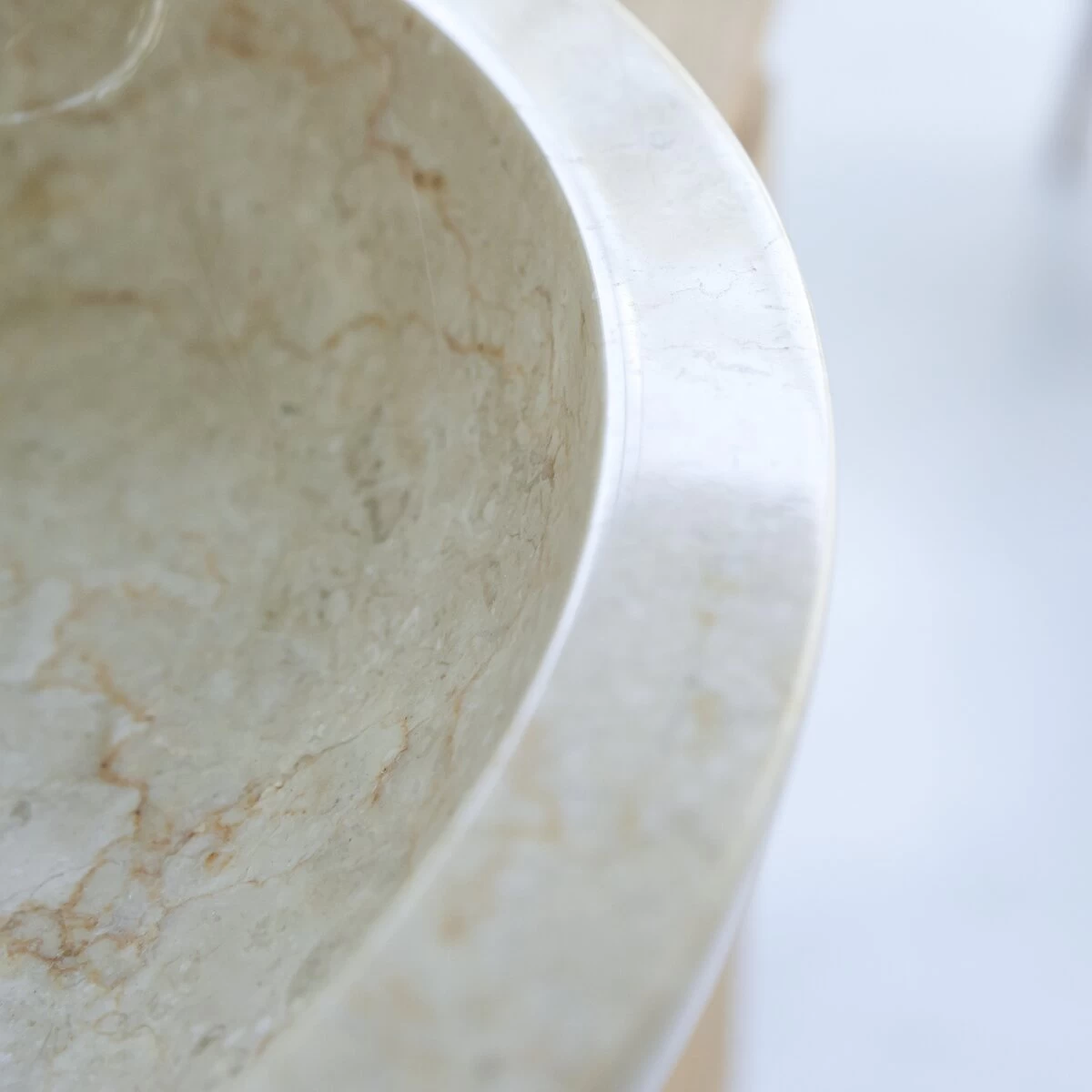 La vasque en marbre Calypso Cream complète avec beaucoup d’élégance tous vos meubles de salle de bain. Travaillée dans un matériau noble et de nouveau au-devant de la scène dans la déco de nos intérieurs, elle apporte une touche de modernité aux salles d’eau les plus classiques. Son design contemporain, sa texture et son toucher doux en font une pièce essentielle de votre bien-être au quotidien. Très facile à poser, la vasque en marbre existe aussi en coloris noir et en coloris gris.