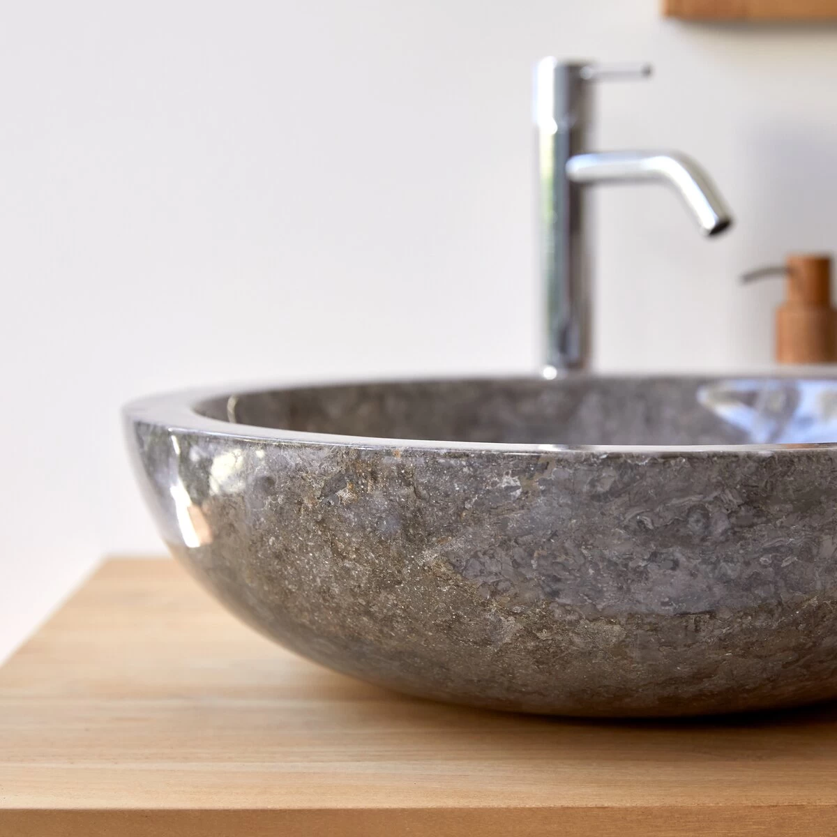 Vous aimerez la ligne tout en rondeur et le design contemporain de la vasque en marbre Calypso Grey.