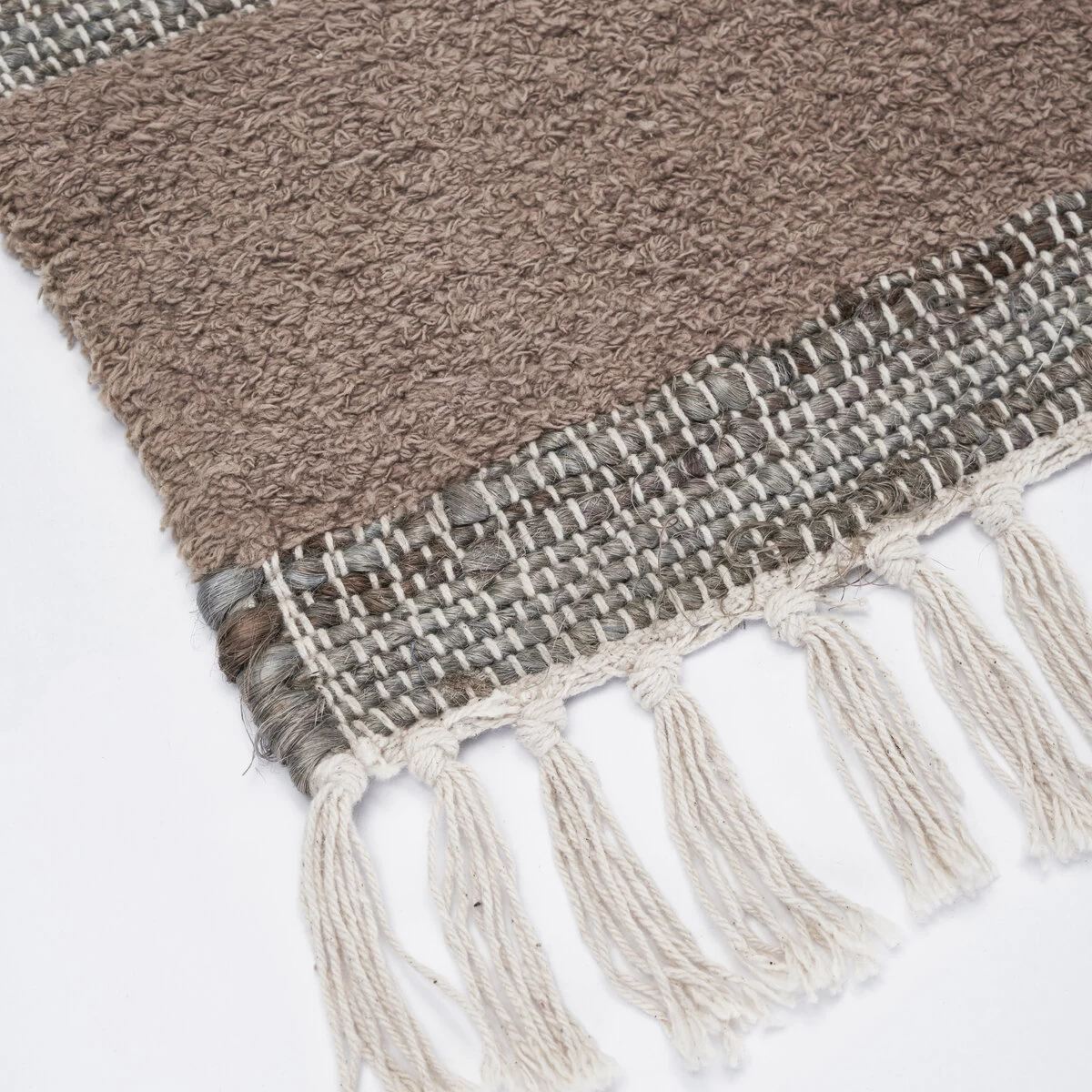 Le tapis en jute Chen signé House Doctor est assez souple, bien long et adopte une finition frangée.