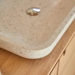 Originale, élégante et très résistante, la vasque rectangulaire Cilas en terrazzo premium Moon offre de nombreux atouts : vous aimerez le raffinement tout en douceur de son délicat jeu de pointillé, la ligne contemporaine qui finit avec brio une salle de bain au style minimaliste ou la modernise… et l’exceptionnelle qualité de son terrazzo premium Moon facile à vivre et à entretenir au quotidien ! Généreuse en dimension, esthétique et raffinée, la vasque rectangulaire Cilas en terrazzo premium Moon confère beaucoup de personnalité à votre pièce d’eau.