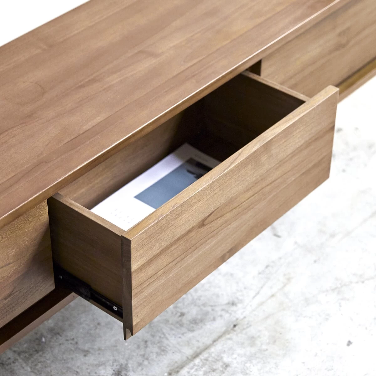 Parfait pour organiser tout le matériel multimédia, le banc suspendu en teck Circa est aussi proposé en version 1 tiroir et 2 niches. Il existe aussi en dimension 110 cm, version 1 niche + 1 tiroir et version 2 tiroirs.