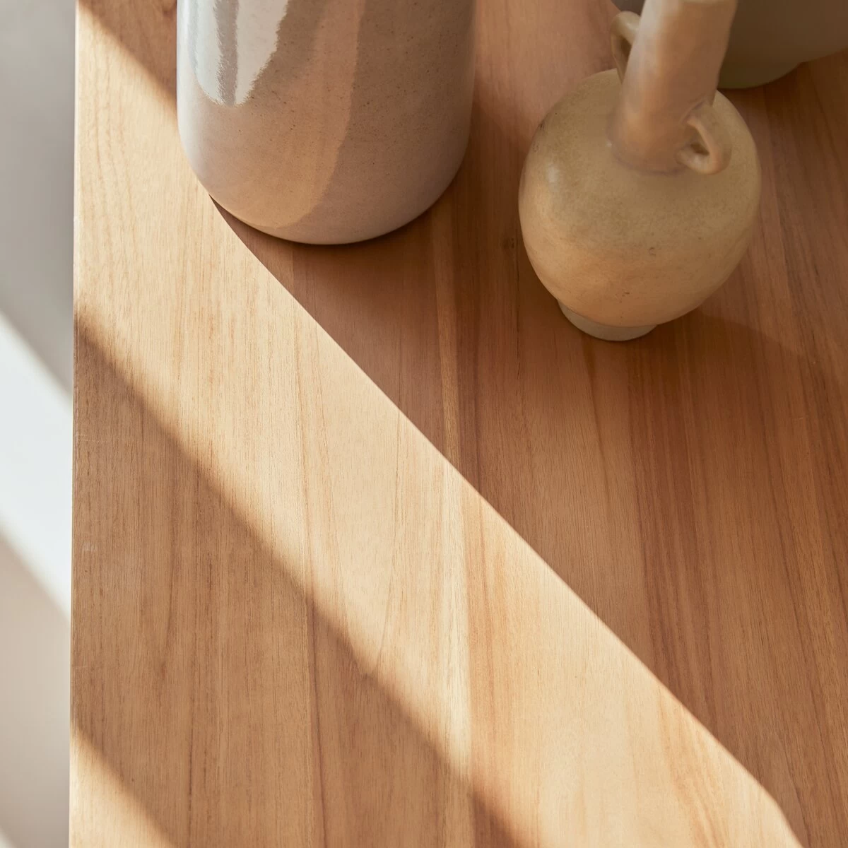 Le banc TV en teck massif Coffee TV s’associe avec talent au buffet de la même collection… on le combine avec la même réussite à vos meubles déjà existants. La douceur de son essence aux reflets miel autorise toutes les associations de style.