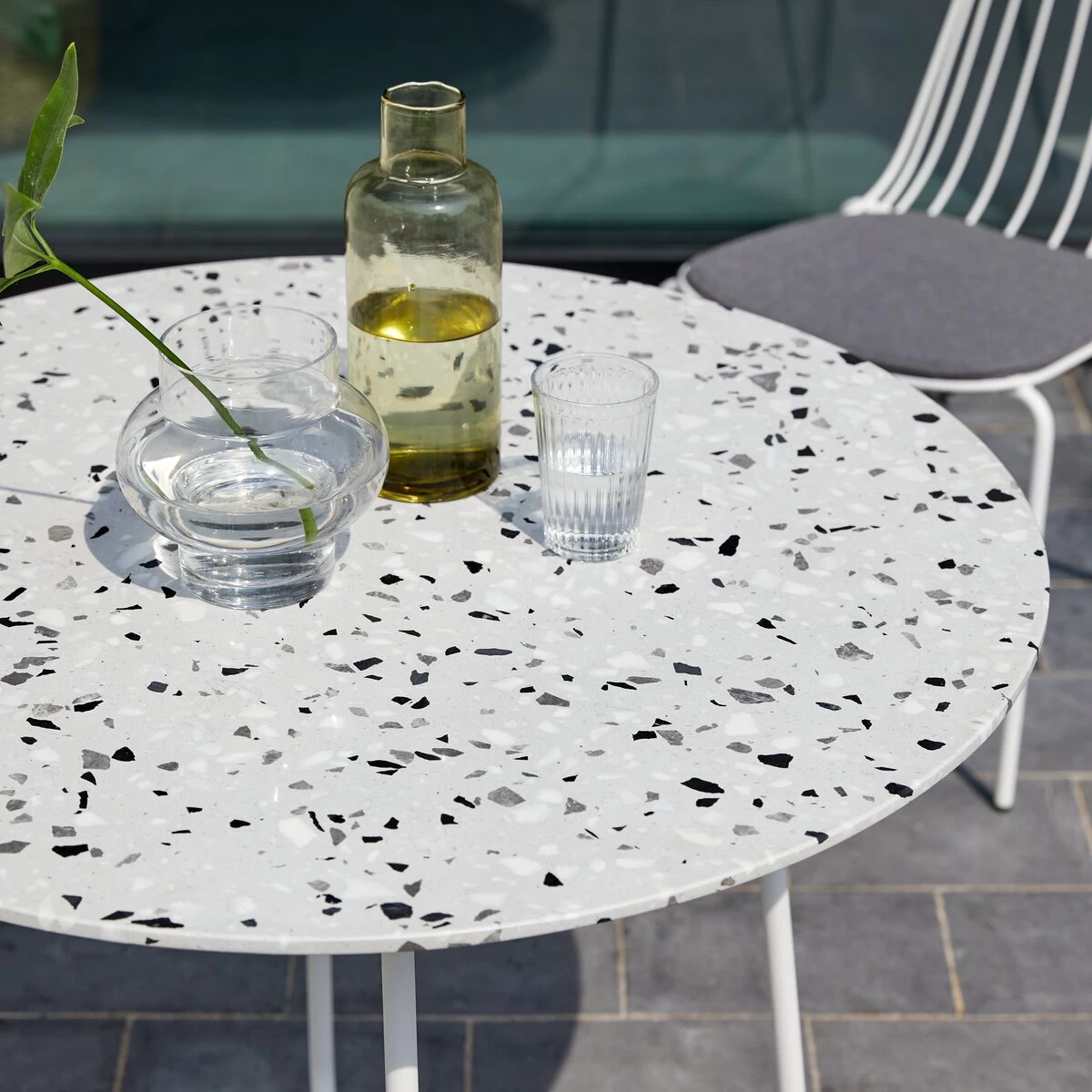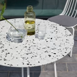 La table de jardin ronde Elio white anime d’une touche contemporaine votre terrasse ou votre balcon. On aime sa ligne toute en rondeur et son plateau moucheté en terrazzo premium aux reflets brillants. Parfaite, associée aux chaises en métal de notre gamme, comme la chaise de jardin Arty white ou la chaise de jardin Gaby white, elle peut aussi se marier avec des chaises de couleur comme la Gaby orange.