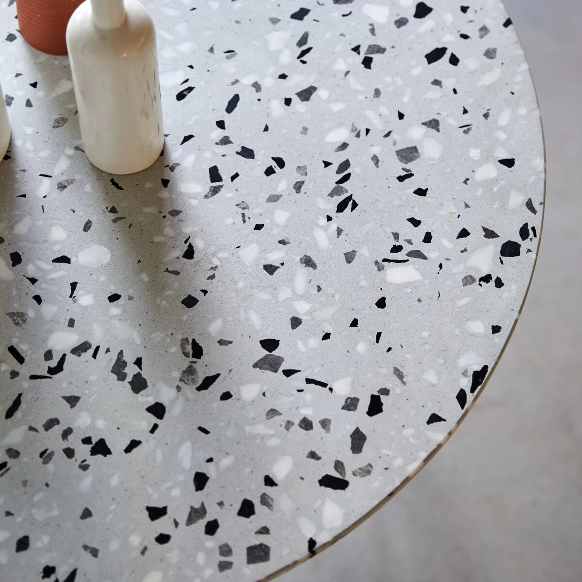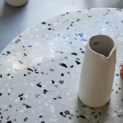 Toute en rondeur et pleine de personnalité, la table ronde en terrazzo premium et métal Elio white illumine votre cuisine ou votre coin repas. On aime la ligne douce de son piétement en fer galvanisé blanc et son plateau en terrazzo premium aux reflets brillants, très tendance dans les intérieurs contemporains. Facile à vivre, elle se nettoie d’un coup d’éponge humide et reste belle jour après jour…