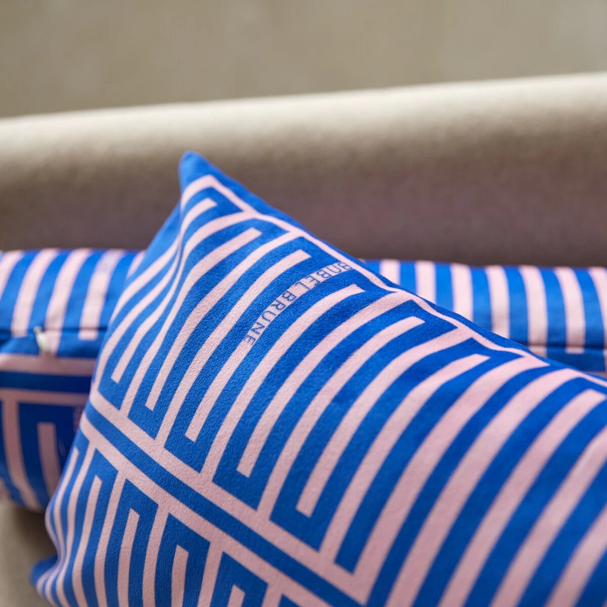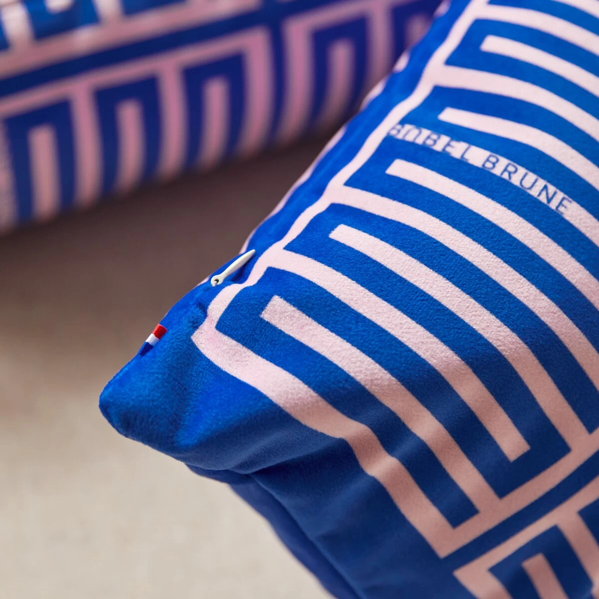 Le coussin Elios rose et bleu signé Babel Brune. On aime l’intensité de son coloris qui réveille d’une touche arty toutes les pièces de la maison : dans la chambre, il anime le lit et peut même être joué en accumulation, dans le séjour sur le canapé et les fauteuils… Réalisé en France, il est travaillé dans une suédine de velours au toucher doux. Ecoresponsable, il est imprimé à base d’encres non polluantes en utilisant un procédé économe en eau et en énergie.