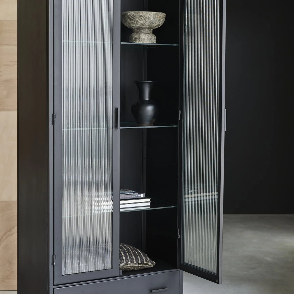 Beaucoup d’allure pour la vitrine haute en métal et verre Emil ! On aime l’inspiration industrielle toujours très en vogue dans les intérieurs contemporains, l’élégante transparence du verre cannelé et la ligne élancée ! Remarquable dans toutes les pièces de la maison : au salon pour recevoir de la déco ou le nécessaire à apéritif, au séjour pour ranger vaisselle et linge de table, dans la cuisine façon garde-manger… même dans la chambre pour accueillir vêtements et linge de nuit !