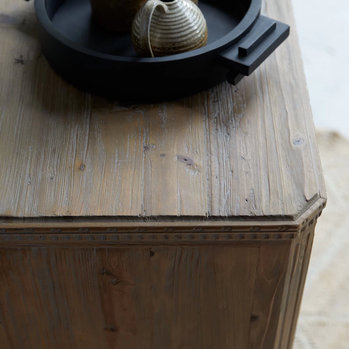 Vous aimerez également les détails sculptés, et la finition grisée du bois de ce meuble de rangement …