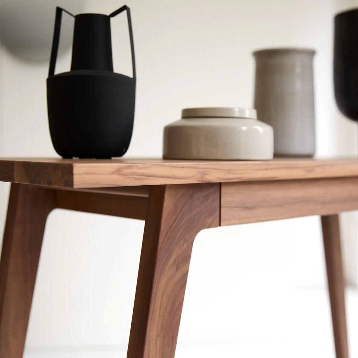 La console en noyer massif Esmée vous est livrée déjà huilée pour être facile à vivre au quotidien. Son bois FSC® est issu de forêts durablement gérées. Elle appartient à notre collection Esmée, travaillée dans un bois noble aux reflets mordorés. N’hésitez pas à la combiner avec des pièces de notre gamme de meubles à l’esprit Scandinave.