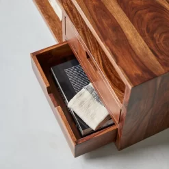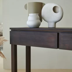 La console wengé en acajou massif certifié FSC® 120 Eva Biti trouve sa place partout dans la maison ! Au séjour, au salon, dans l’entrée ou le bureau… on y place objets de déco, plantes ou livres.