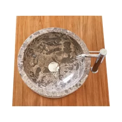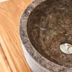 Taillé dans un marbre provenant de différents gisements, la vasque en marbre Exo Stri grey peut visuellement différer très légèrement de notre visuel, fluctuant du gris au brun.