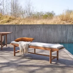 Une nouvelle vision du design contemporain outdoor : le banc de jardin en teck massif Fado, un meuble premium qui conjugue prestations de qualité, lignes pures… et démontre que le mobilier s’envisage désormais avec le même niveau d’exigence, dehors et dedans. Revue de détails soignés : dessus latté de très belle facture, piétement équilibré à la ligne singulière pour alléger visuellement l’ensemble, visserie en laiton, coussins entièrement déhoussables et lavables. Associé à la table basse ou haute en teck massif Fado, il compose un très bel ensemble de détente, en intérieur comme en extérieur.
