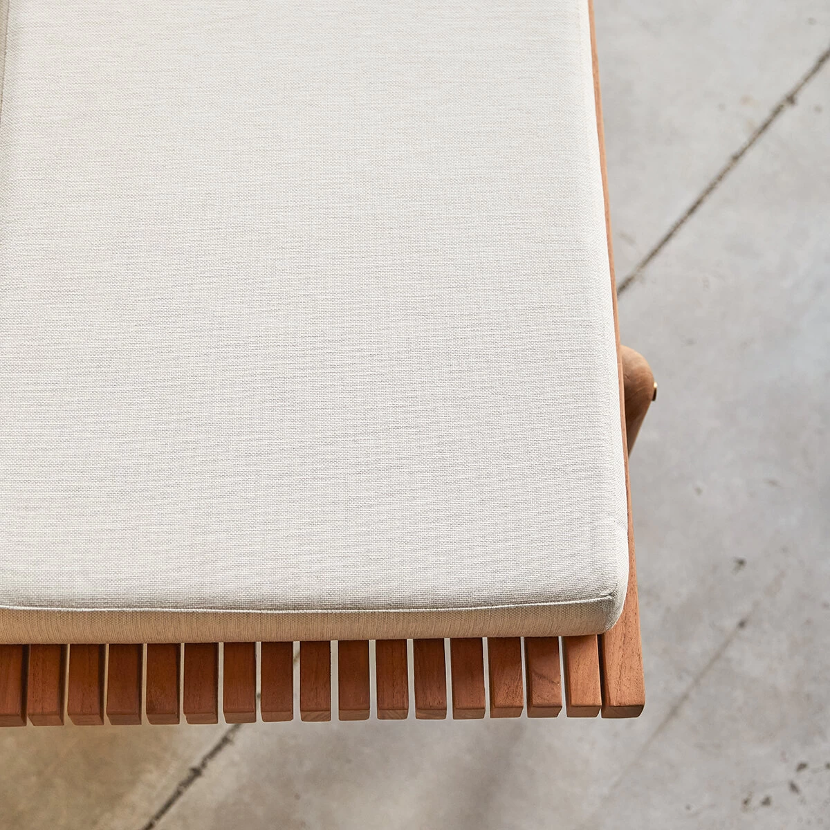 Comme une invitation à l’évasion, il suit la tendance In & Out qui permet aux meubles indoor de devenir outdoor à la moindre envie. Travaillé dans un bois noble, verni, réputé pour ses qualités de résistance aux petits accidents domestiques, à l’usure et aux intempéries, c’est un meuble haut de gamme qui offre de très belles finitions soignées : le plan latté est de belle facture, la visserie en laiton, les coussins déhoussables et lavables en machine. Idéal dans une entrée spacieuse, un long couloir, un séjour ou en bout de lit, il se fait aussi banc de détente au salon ou sur la terrasse.