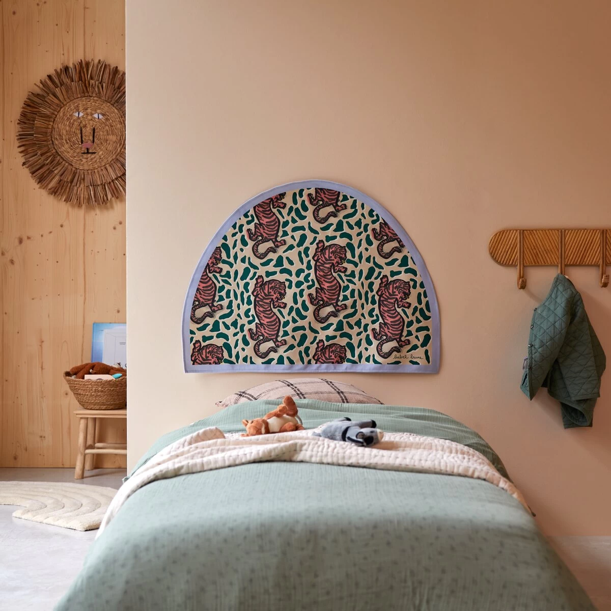 La tenture tête de lit Féline signée Babel Brune. Inspirée d’horizons lointains, cette tête de lit fait voyager sans sortir du lit ! Idéale pour créer une atmosphère exotique et arty dans la chambre à coucher, elle apporte beaucoup de personnalité à votre décoration intérieure. Installée en un clin d’œil (il suffit de l’accrocher au mur), elle métamorphose instantanément l’ambiance d’une des pièces les plus importantes de la maison.