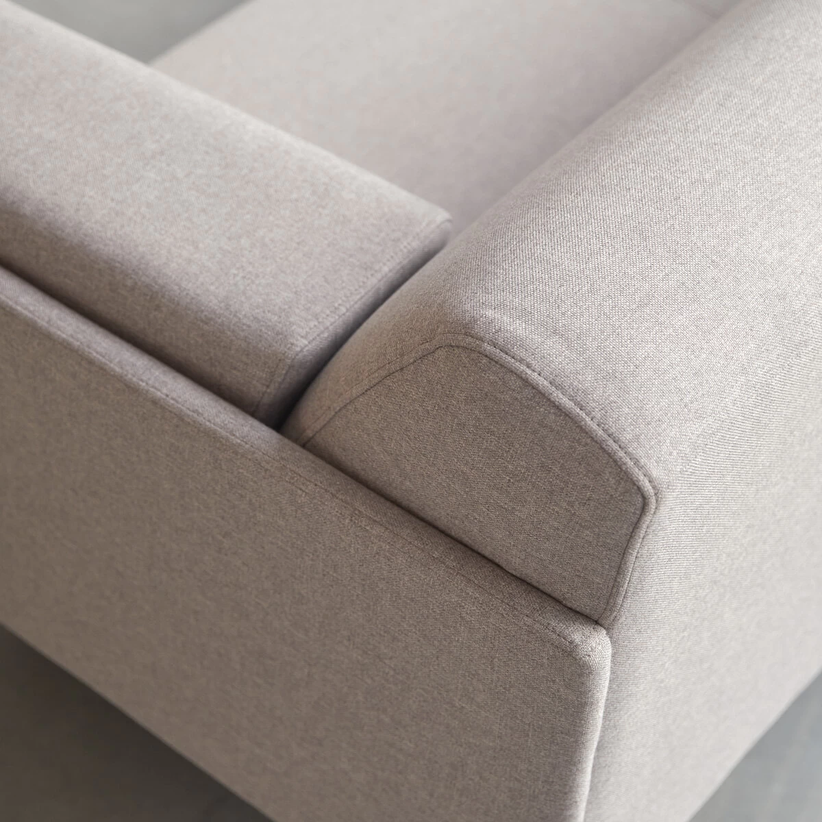séduire ! On aime sa capacité à se métamorphoser selon qu’on pose les coussins accoudoirs ou non (pour un style ultra-minimaliste ou plus cosy), son tissu certifié OEKO-TEX®, ce qui garantit l’absence de substances ou de produits chimiques nocifs et ses esthétiques pieds en métal, suffisamment hauts pour permettre à un balai de se glisser sous le meuble.