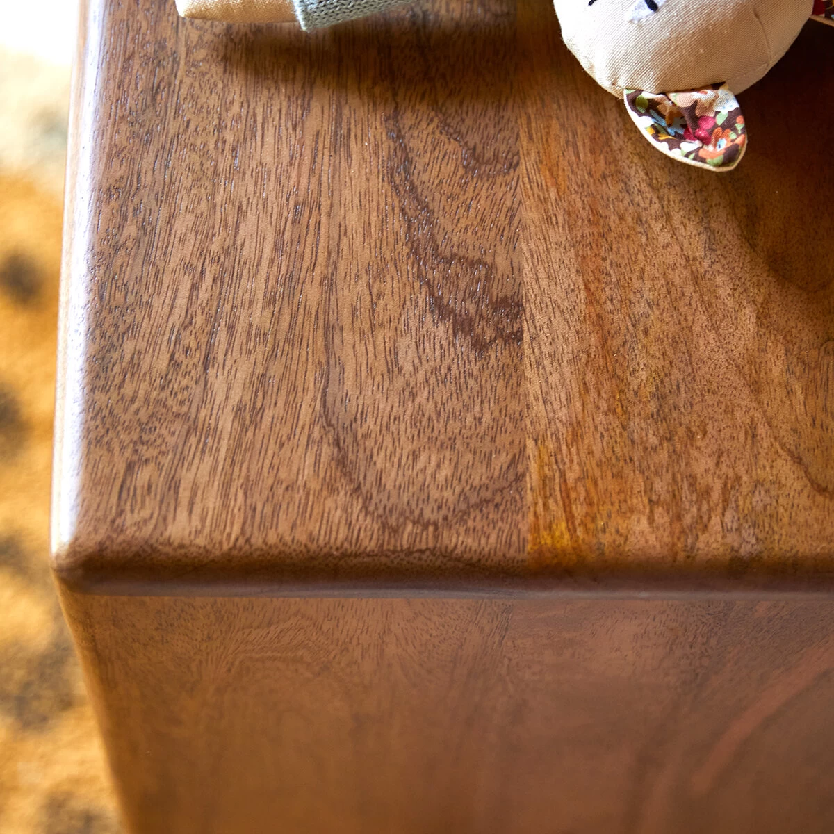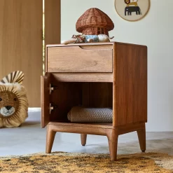 Un petit meuble comme un coffret aux trésors… Le chevet en manguier massif Gabrielle est idéal pour garder à portée de main les petits objets qui aident à faire de jolis rêves comme le doudou ou les peluches préférées. Grâce à ses deux tiroirs, l’un de taille classique, l’autre vraiment spacieux, il reçoit livres, jouets, boîtes de jeux… Dans la salle de jeux, il se fera espace de rangement pour apprendre aux enfants à ranger eux-mêmes les jouets : un grand pas vers l’autonomie !