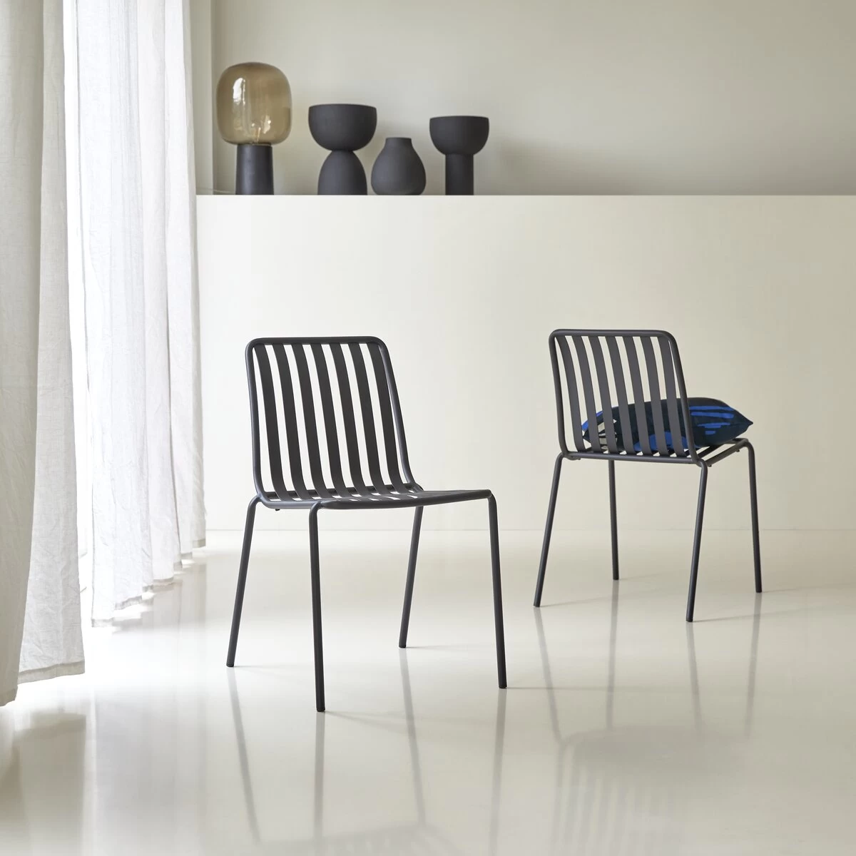 A l’intérieur comme à l’extérieur, la chaise Gaby en métal black séduit par son design graphique et son allure contemporaine ! Associée à votre table en bois ou en métal, elle réveille d’une touche actuelle séjour et cuisine et complète avec beaucoup d’à-propos votre salon de jardin. Parfaite pour l’espace repas, elle trouve aussi naturellement sa place dans d’autres pièces de la maison : en lieu et place d’une chaise de bureau, dans la chambre ou pour accueillir les convives dès l’entrée.