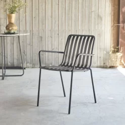 Sobre et contemporain, le fauteuil Gaby en métal black se marie avec talent aux autres meubles de notre gamme à l’esprit actuel.